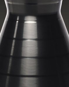 Black anodised aluminium base and cap with CNC cut grooves, hand spun in the UK