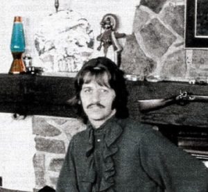 Ringo, the drummer of iconic British pop band The Beatles is photographed here at home with his Astro lava lamp in original copper finish.